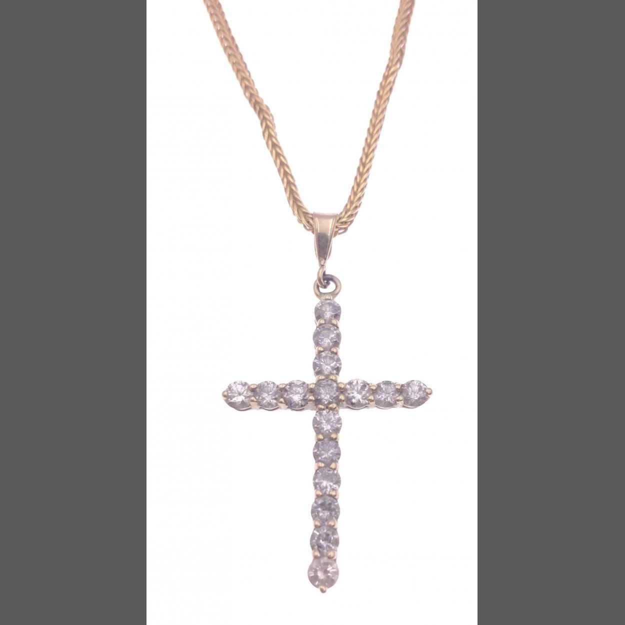 A 750 stamped 18ct yellow gold chain 48cm long, weight 10.43g with a 375 stamped 9ct yellow gold cross pendant set with 16 diamonds (3.5cm x 2.25cm) pendant weighs 2.25g
