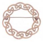 A 375 stamped 9ct yellow gold circular twisted knot open design brooch, 4 cm diameter, weight 9.09g