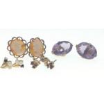 Five assorted pairs of earrings set with seed pearls, amethysts, cameos etc gross weight 10.45g most hallmarked 375 apart from amethyst set