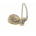 A yellow metal scarab pendant on a yellow metal chain 40cm long, weight 8.76g. Pendant marked 18 in Arabic ١٧