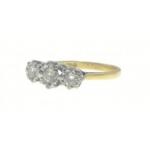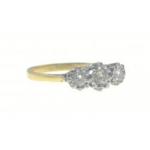 A 750 hallmarked 18ct yellow gold ring set with three illusion set diamonds (tested) Size O, gross weight 3.50g