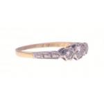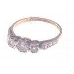 An 18ct stamped yellow gold 3 stone diamond (tested) set ring, Size L, gross weight 2g