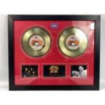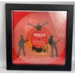 A framed QUEEN 7 inch de luxe double disc 'We are the Champions' and 'We will Rock You' frame size 56x45cm and a framed QUEEN vs the Miami Project, an 11" clear disc of 'Another one Bites the Dust', (36.5x36.5cm)