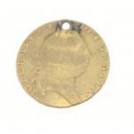 A GEORGE lll 1793 Gold Guinea coin - weight 8.09g aporox - the coin has had a hole drilled for use as an interesting pendant - King George's head still visible but worn / 2.5cm diameter