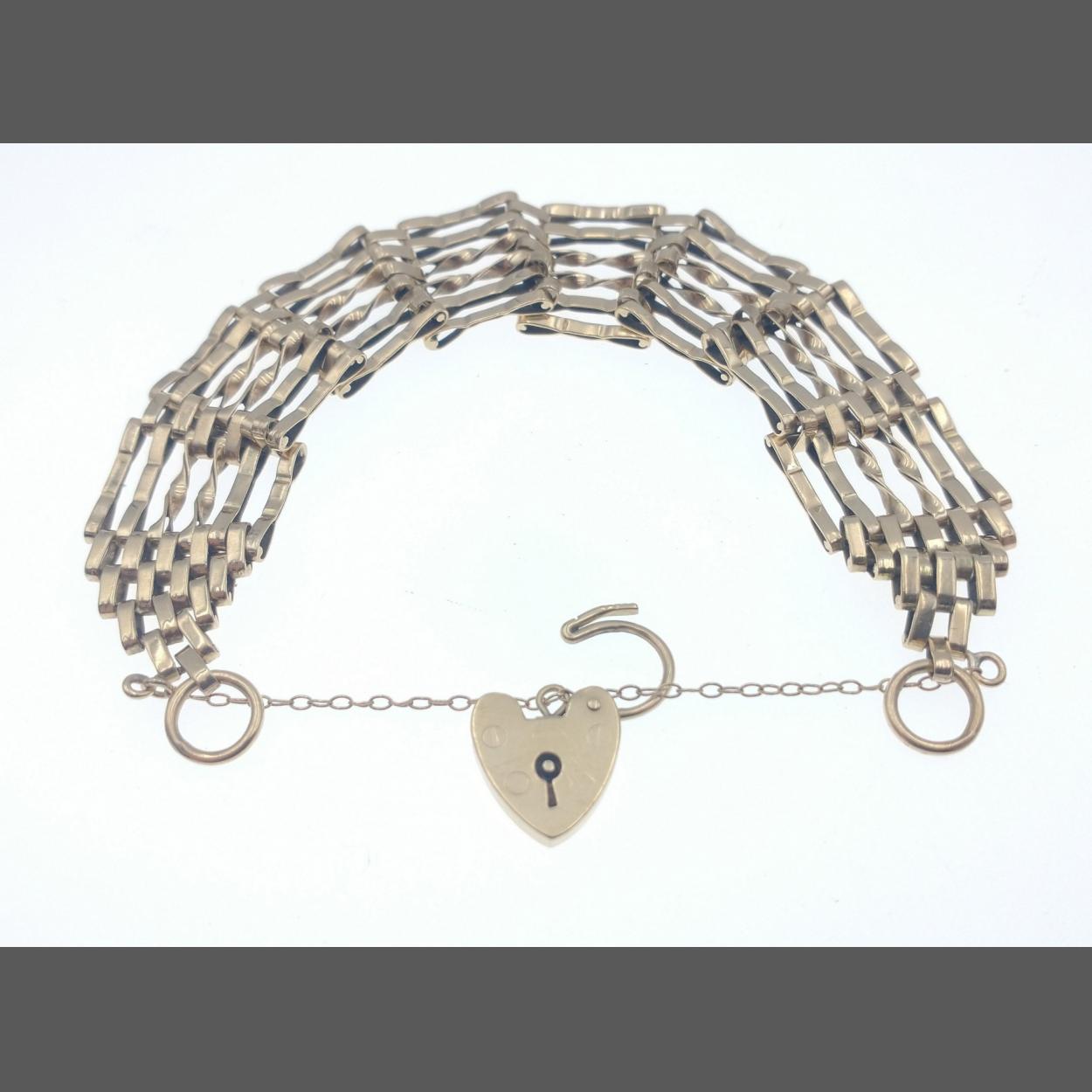 A lovely chainlink 375 stamped yellow gold bracelet (each link is stamped 375!) with heart safety chain - weight 17.74g approx 17cm length approx