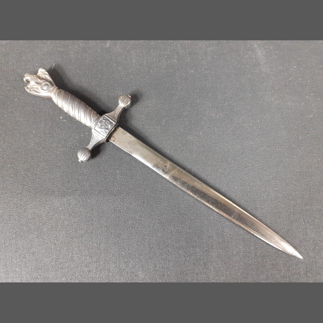 Third Reich miniature dagger letter opener. These were produced post war and sold as souvenir items to occupying service personnel. As such they carry no Nazi symbols but are otherwise well modelled. Minor pitting to blade. 21cm approx.