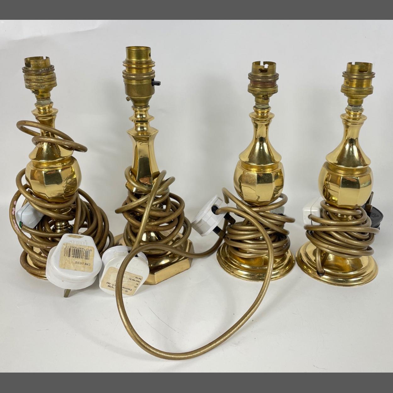 Four brass table lamps three of the same pattern 23cm high, plus one at 24cm
