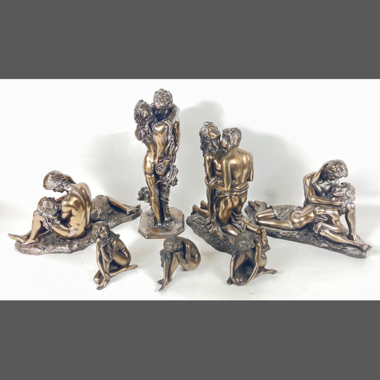 CROSA bronze effect lovers' figurines from 1998 and 2002 including a pair 33cm long and approx 19cm high plus three STUDEHILL figurines of naked ladies