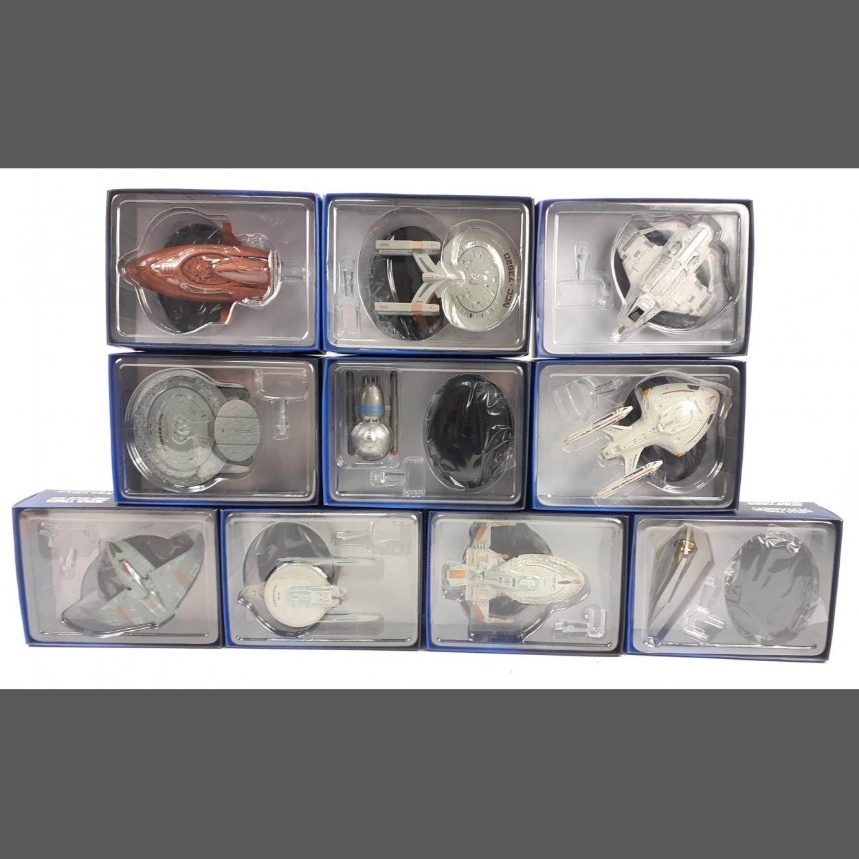STAR TREK - a collection of blister packed, unopened EAGLEMOSS diecast figures to include Bajoran Raider (9029-A/A), Cheyenne Class (9255-A/A), USS Rhode Island NCC-72701 (2052-A/A), Vulcan Survey Ship (5073-A/A), Medusan Starship (6953-A/A), USS Phoenix NCC-65420 (2865-A/A), Tholian Webspinner (6662-A/A), USS Yeager NCC-65674 (5137-A/A), USS Curry NCC-42254 (4425-A/A), Bajoran Assault Vessel (4015-A/A),