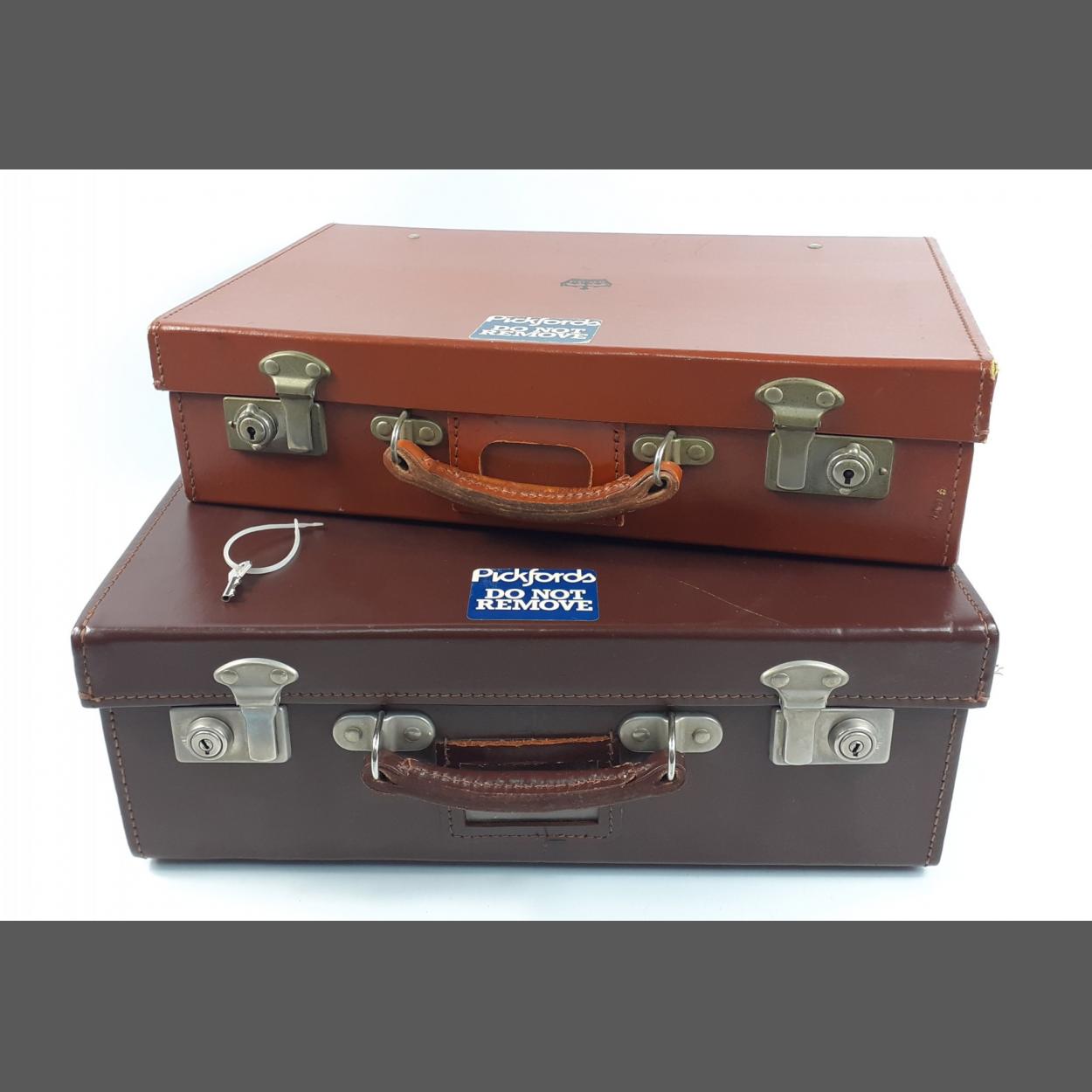 TWO VINTAGE Bijou suitcases in tan and dark brown leather - both cases in nice clean condition - the tan case has its key - dimensions of the larger dark brown case are 40cm length x 29cm depth x 14cm approx