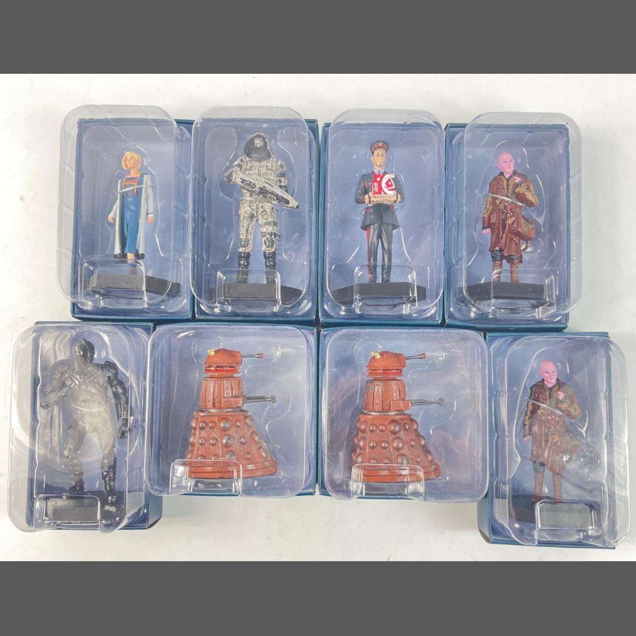 DOCTOR WHO - THE THIRTEENTH DOCTOR (Jodie Whittaker,) boxed as new collectable models by EAGLEMOSS to include 138 (The Thirteenth Doctor), 151 (T'Zim Sha), 153 (Kerblam Man), 155 (Sniperbot), 157 2 of (Reconnaissance Scout Dalek), 161 2 of (Ribbons),