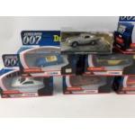 Nine JAMES BOND Diecast models to include: Rolls Royce, Jaguar XKR, Sunbeam Alpine, Aston Martin DBS, Lotus Esprit Underwater, BMW Z3, AMC Hornet and 1 other DB5