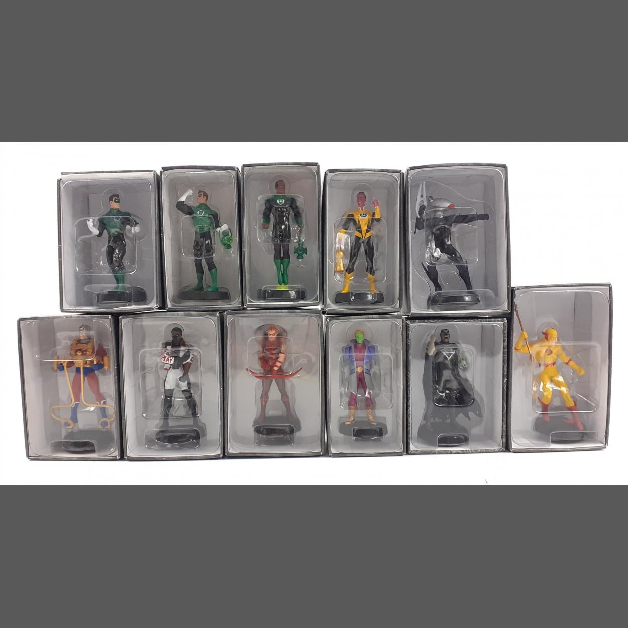 DC Comics - GREEN LANTERN and other figures a collection of blister packed, unopened EAGLEMOSS diecast figures to include Green Lantern, Red Arrow, Professor Doom, Black Manta, Orion, Sinestro, Mr Terrific, Black Hand, John Stewart, Kyle Rayner, Brainiac 5