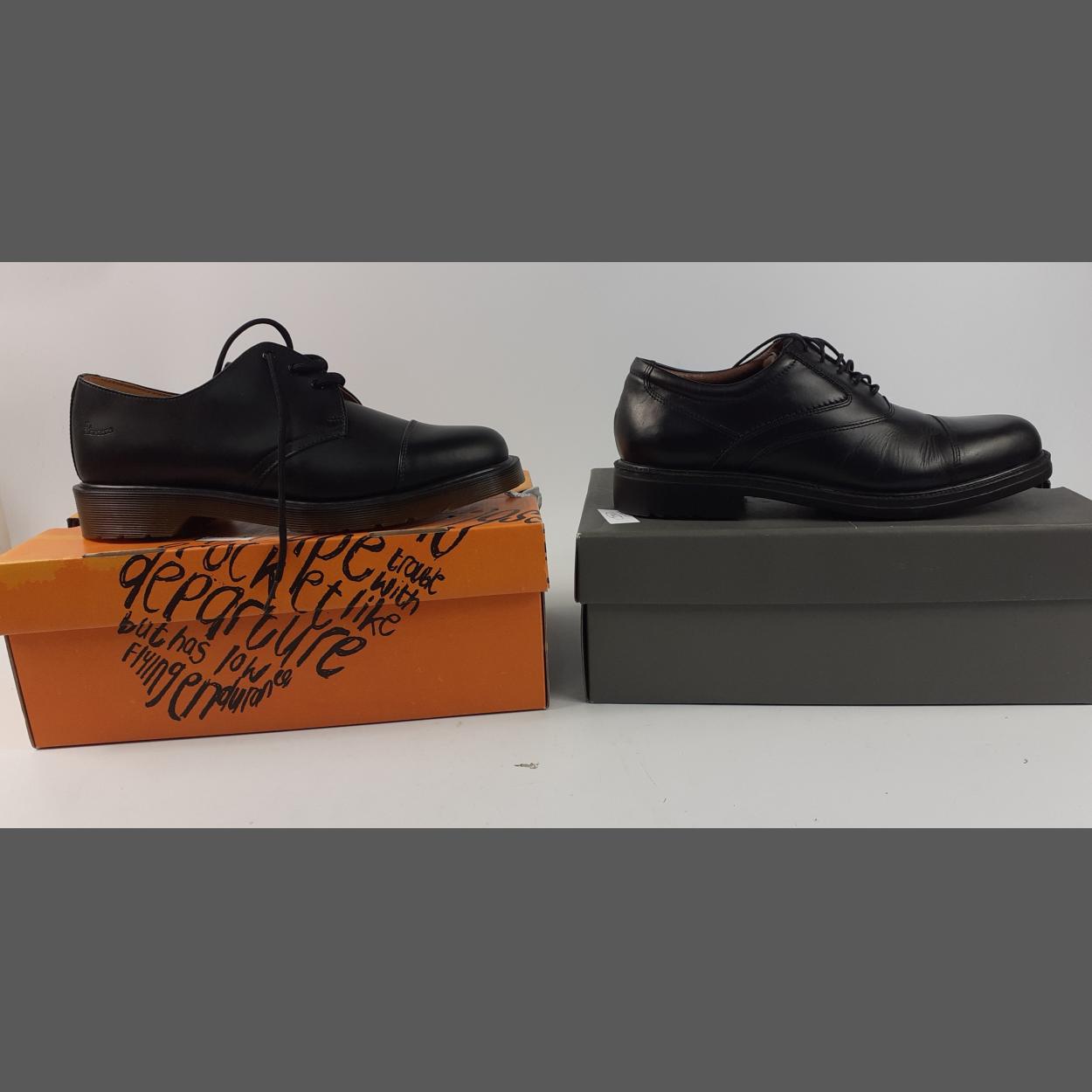 Two pairs of shoes for men including DR MARTENS AIR WAIR size 9 black lace-ups, never worn and a pair of HUSH PUPPIES size 9 black lace-ups, scarcely worn,