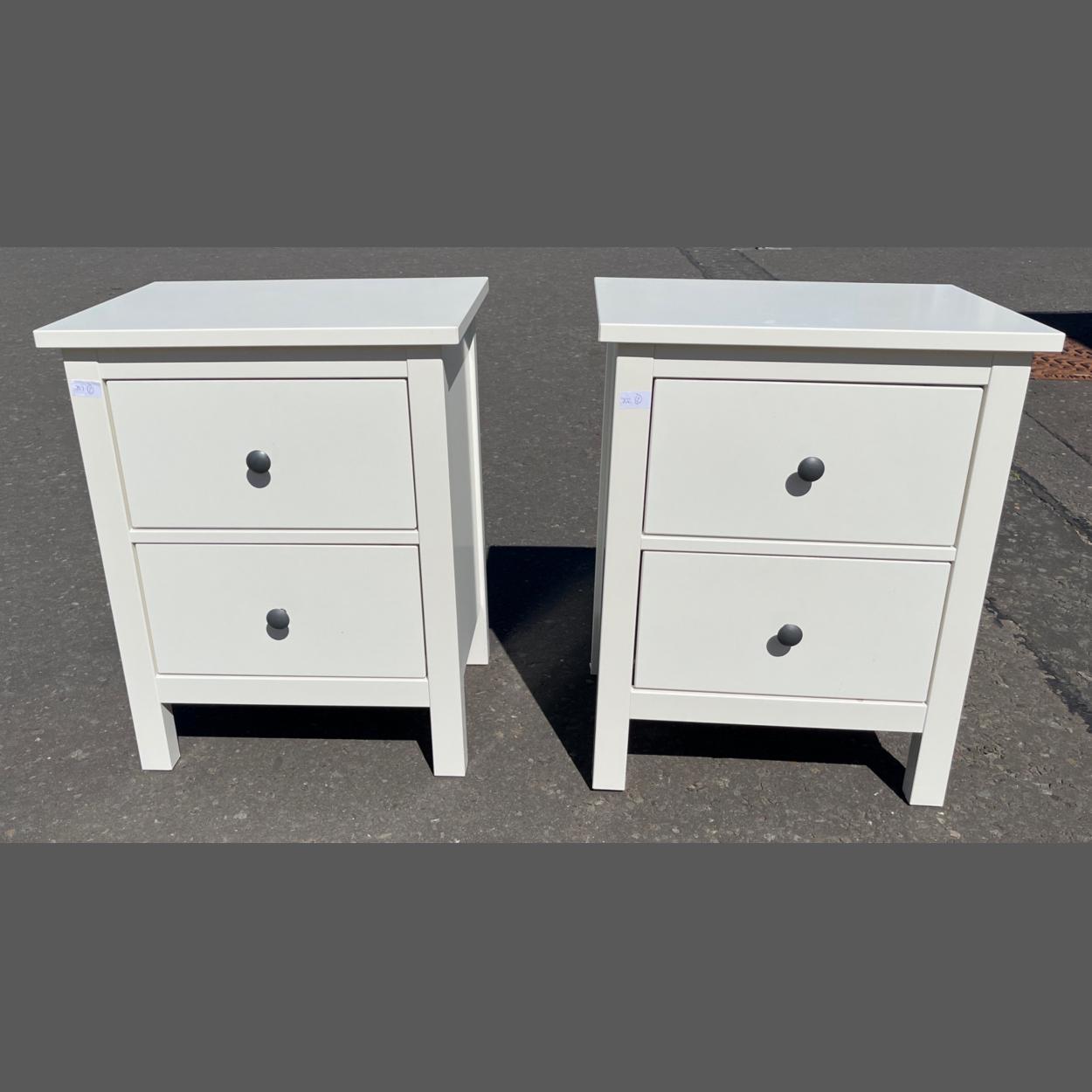 A pair of Ex-IKEA white bedside drawers each dimension 57cm width x 52cm height x 38cm depth approx