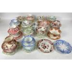 Around 20 19th Century one cup and saucer different sets of fine bone china, some amazing RARE patterns, a two cup and saucer white and green set included, such names as Embassy ware, Copeland Garret, Felspar Porcelaine, Foley Davenport and much more