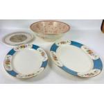 A large pottery floral ceramic planter, damage repaired, but this doesn't detract from this lovely item! - dimensions 40cm x 26cm x 14cm depth, also a large MASONS Ironstone Mandalay Red pattern raised bowl 26cm diameter with its matching base plate 27cm diameter approx - with a mixture of large platter plates, a lovely raised bowl in bluish/purplish colour pattern and a large ewer etc