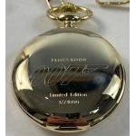 JAMES BOND gift set from the British Gold Company to include a limited edition pocket watch (17/1000), a gun-shaped keyring and a medallion signed by Daniel Craig, (some damage to box), also 2 SPECTRE rings size 11 and 12