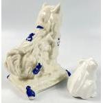 Early c20th Century THE FROG AND THE CAT - a sitting Persian style cat on a cushion ornament - dimensions 15.5cm height 8cm width and a small white Bone China sitting frog ornament by COALPORT(SO CUTE!) - dimensions 6.5cm height 5.5cm width approx