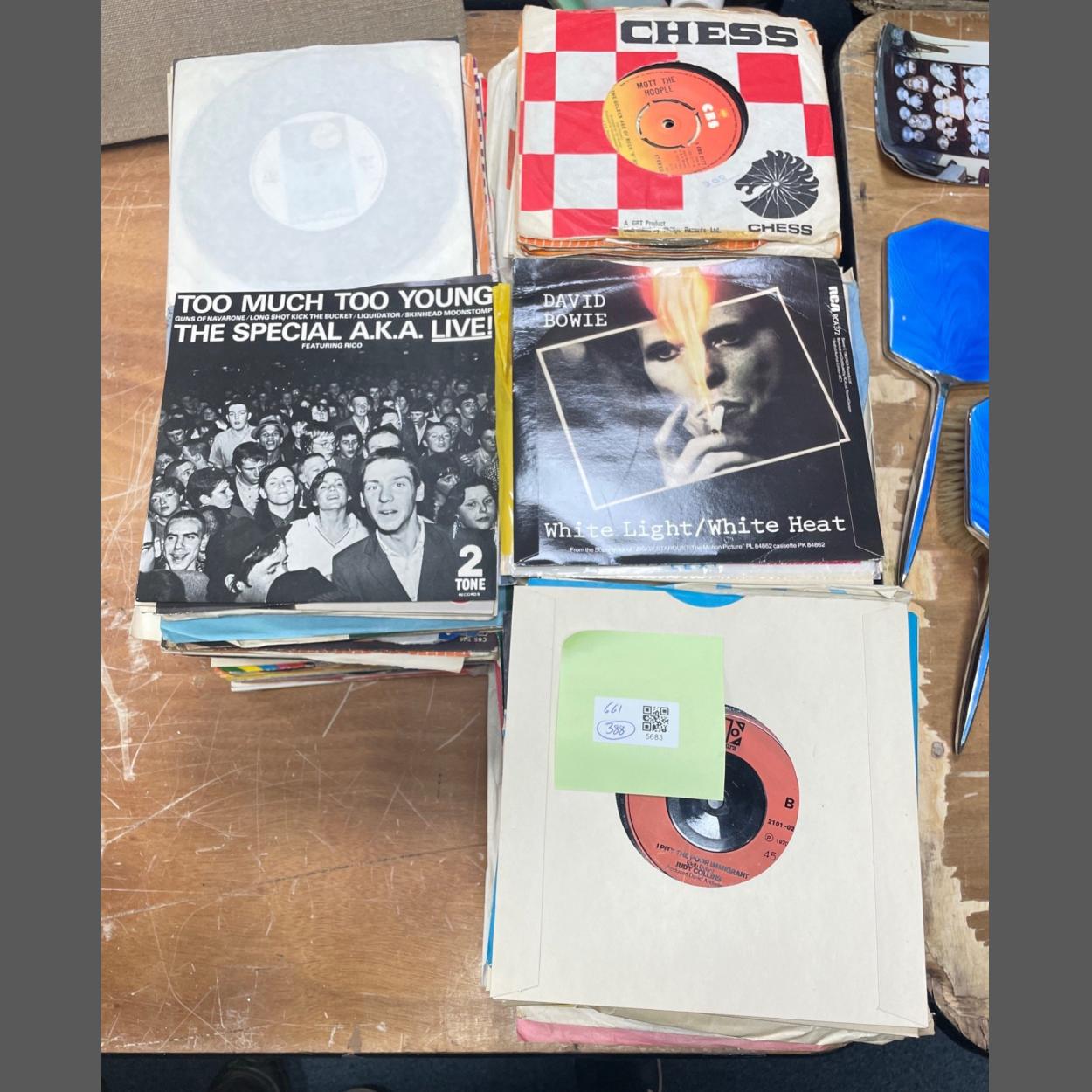 A large collection of single records on Vinyl. Dating mainly from the 70s and 80s. Over 300 items in good condition. To include such classics as SPLINTER Costafine Town, BLONDIE Atomic, JOHN & YOKO Happy Christmas, 10CC I'm not in Love, THE BOOMTOWN RATS Rat Trap, THE STRANGLERS Coming Your Way, GEORGE MCCRAE Rock Your Baby, TOM WAITS Downtown Train, OMD Taking Sides Again, JAPAN Quiet Life and lots lots more. From a good collection that has been well stored.