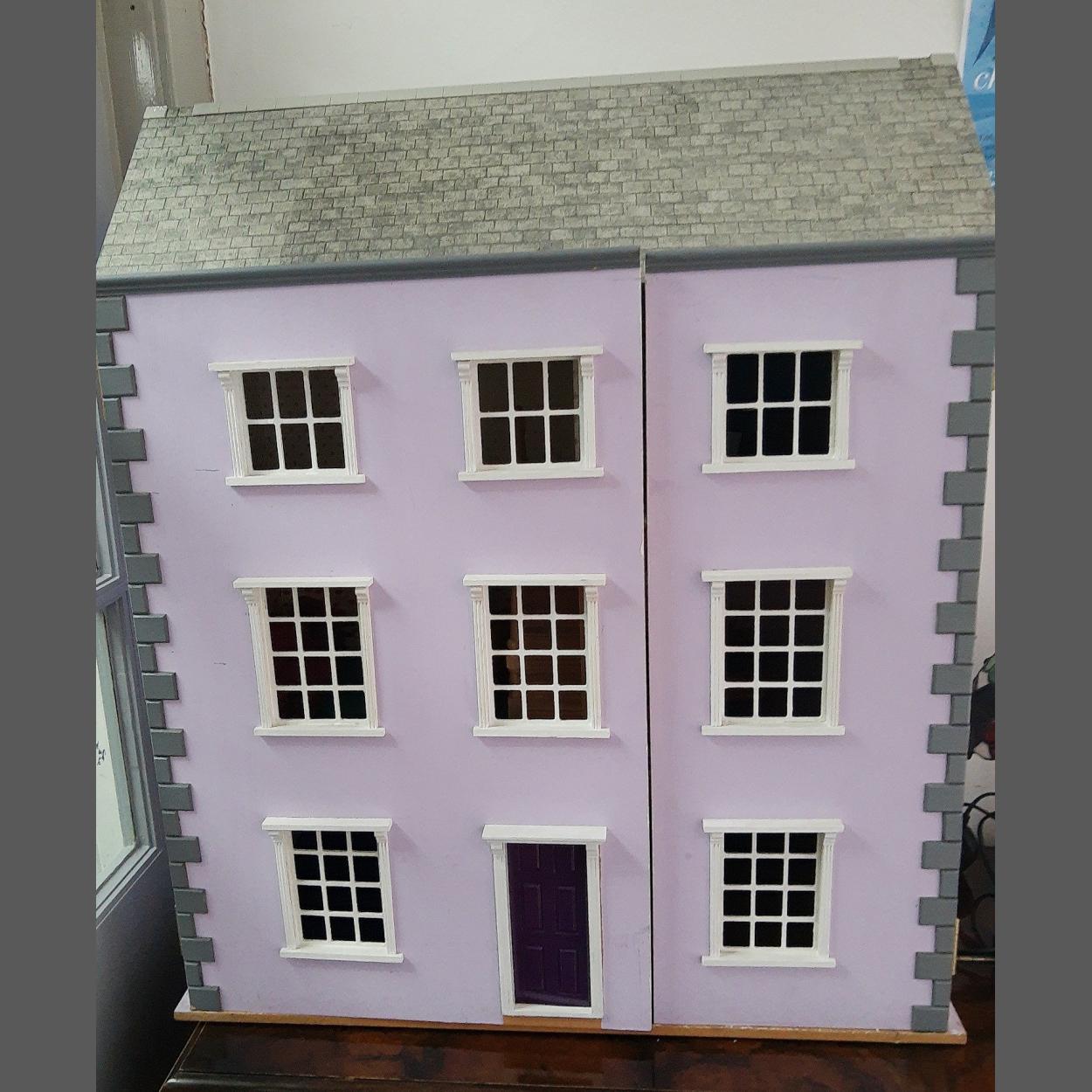 A SUBSTANTIAL doll's house (80x67x37cm), with panoramic doors which open out to reveal the living spaces etc