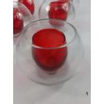 8 Tealight candle holders in red coloured glass set in clear glass globes , the globes measure 12cm tall and the red glass holders stand 9cm , there are 2 spare red holders