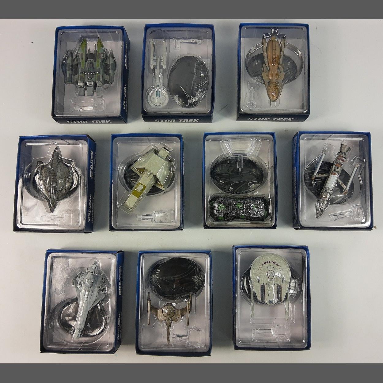 STAR TREK - collectable die-cast models by EAGLEMOSS to include Gorn Starship (3989-A/A), The Phoenix (3321-A/B), Promellian Battle Cruiser (3041-A/A), USS Lantree NCC--1837 (1142-A/A), Devore Warship (3784-A/A), T'Pau (7808-A/A), Borg Probe, (2171-A/B), Hirogen Holoship (3487-A/B), USS Excelsior (Prototype) (6099-A/A), Vaaduar Fighter (2852-A/A),
