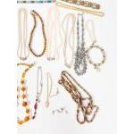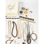 A hand-painted wooden jewellery box 14.5x14.5x7cm full of costume jewellery