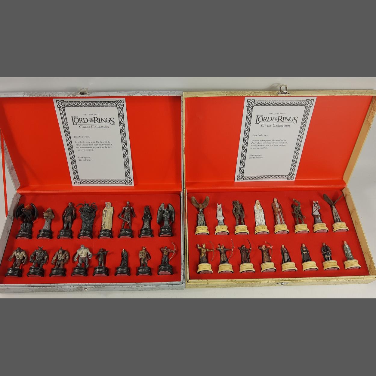 LORD OF THE RINGS two boxed, unused, sets of chess pieces - one white and one black - for The Final Battle in original boxes by EAGLEMOSS