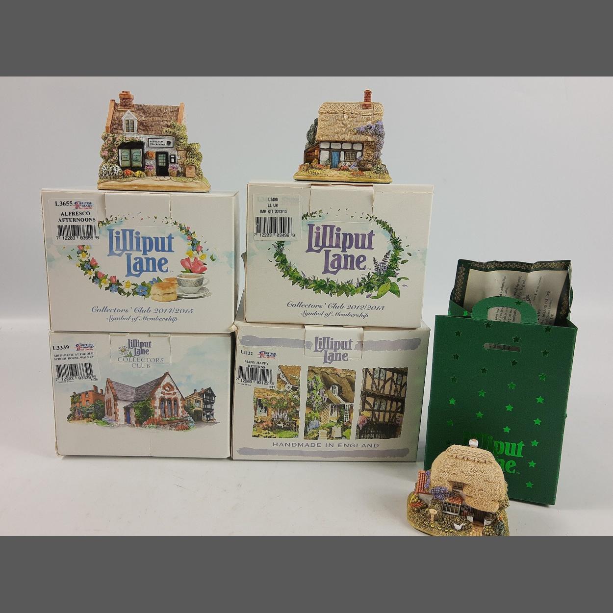 LILLIPUT LANE - The Perfect Mum, Alfresco Afternoons, Many Happy Returns, Arithmetic at the Old School House, Walney, Collector's Club 2012/2013, all boxed with deeds no chips or cracks