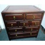 A miniature dark wood Oriental chest of drawers 2x3x2x1 drawer arrangement, brass drop handles 56x40x56cm