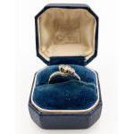 An 18ct stamped yellow gold and platinum VINTAGE ring with three white diamonds ring size K gross weight 2.35g approx