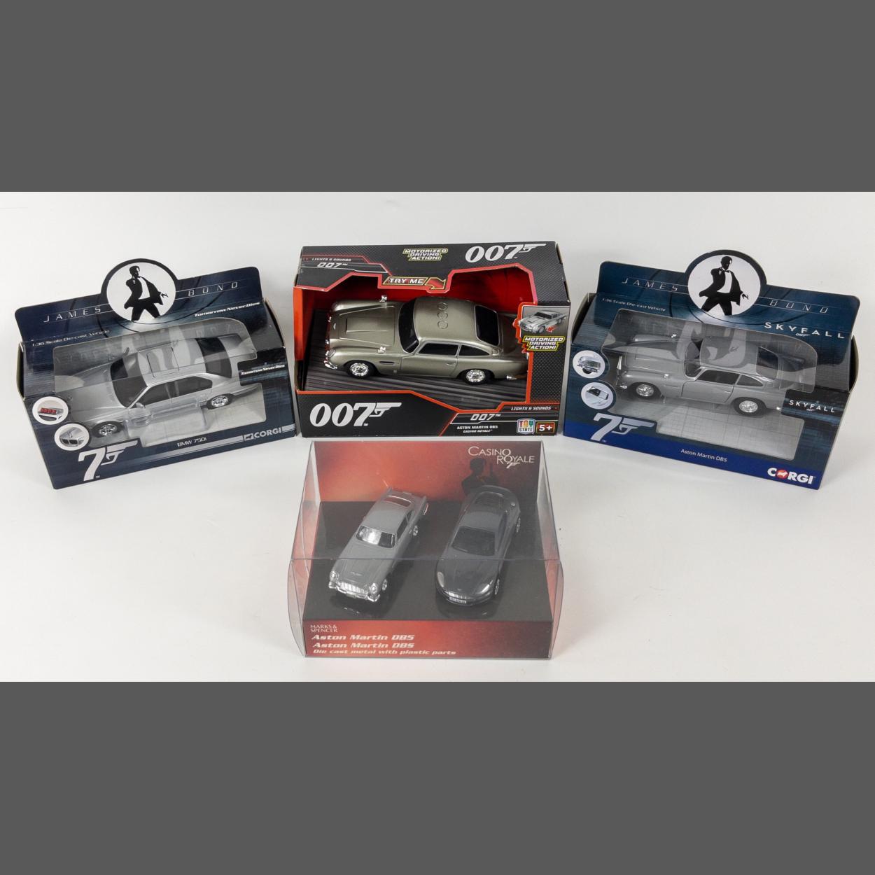 JAMES BOND - CORGI collectable diecast model cars to include Skyfall Aston Martin DB5 (CC04310), and Tomorrow Never Dies (CC05104), a TOY STATE Casino Royale Aston Martin DB5 cars with lights & sounds and MARKS & SPENCERS twin pack Casino Royale Aston Martin DB5s
