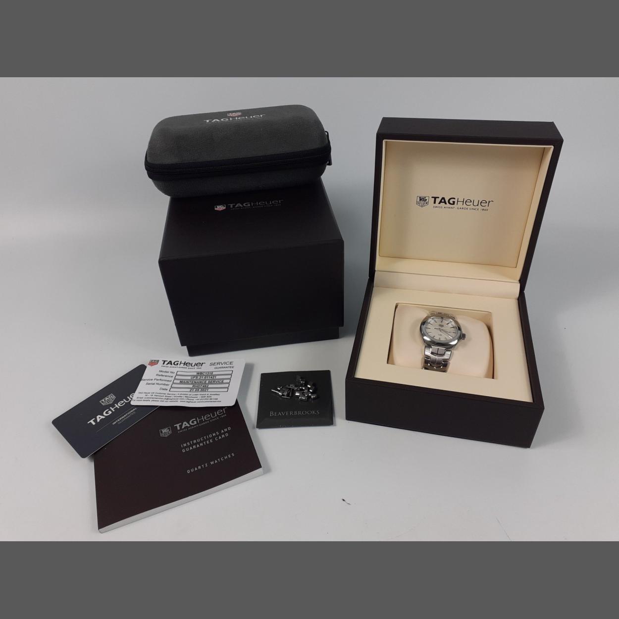 TAG Heuer ladies quartz mother of pearl dial watch - WBC1310. With original box, instructions, Jewellers service hard shell case and service guarantee card. Includes spare links for bracelet.