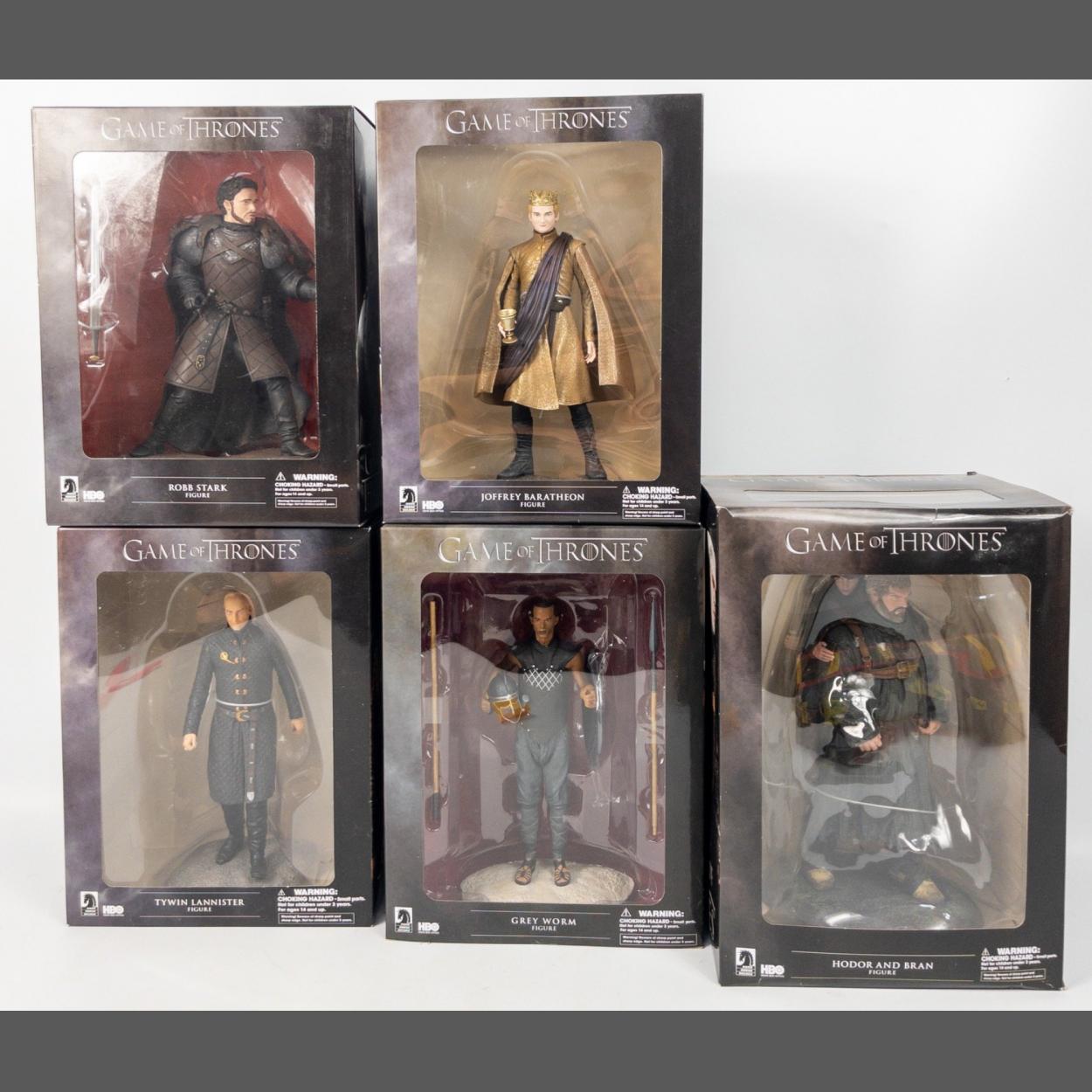 GAME OF THRONES - unopened boxed collectable figurines from Dark Horse Deluxe to include ROBB STARK, TYWIN LANNISTER, GREY WORM, HODOR and BRAN, and JOFFREY BARATHEON