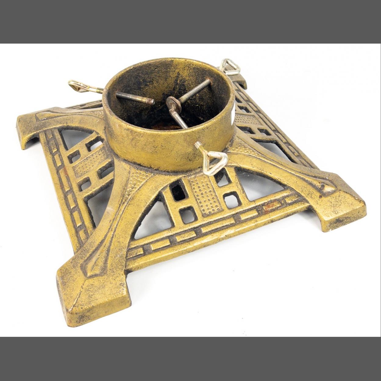 Large vintage cast Christmas Tree stand with size adjuster screws. Base measures 35cm by 35cm approx. Tree diameter is 15cm approx. Very heavy solid item.