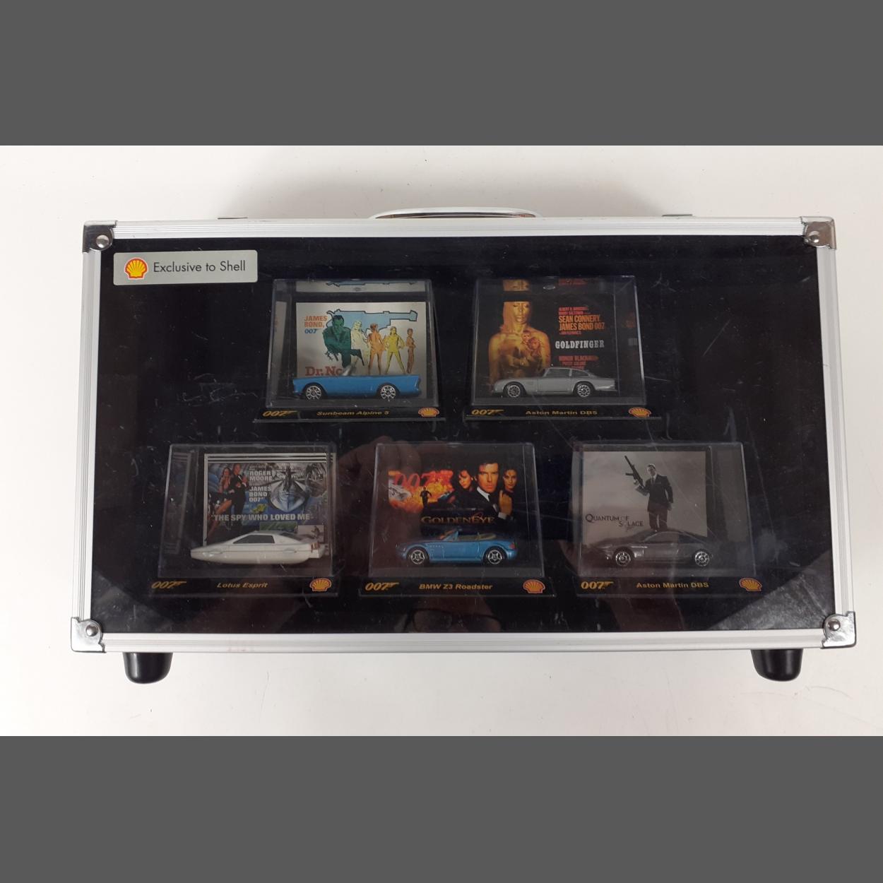 JAMES BOND 007 THE CARS OF BOND - EXCLUSIVE TO SHELL. Five small boxed diecast Bond cars in individual boxes contained within a presentation case. Excellent condition.