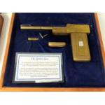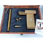 JAMES BOND 007. THE MAN WITH THE GOLDEN GUN. Two boxed Golden Guns in wooden presentation cases. Unbranded and each appears to be of fairly amateurish construction with loose pieces and loose finish - but unusual!