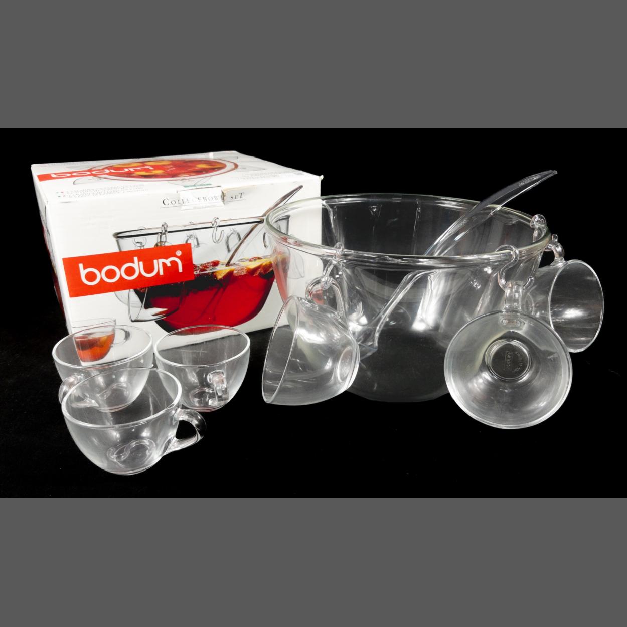 A BODRUM College Bowl Punch set boxed with six glasses and serving punch ladle - boxed and unused item