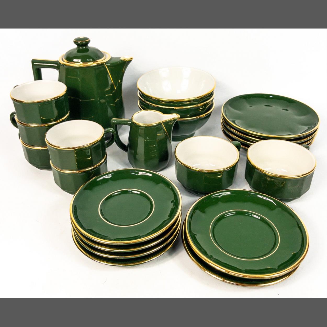 QUALITY! YVES DESHOULIERES APILCO green part coffee or tea service with coffee pot 18 pieces approx