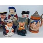 A selection of 13 CHARACTER JUGS ranging in size from 7cm to 21cm tall and a BEER STEIN