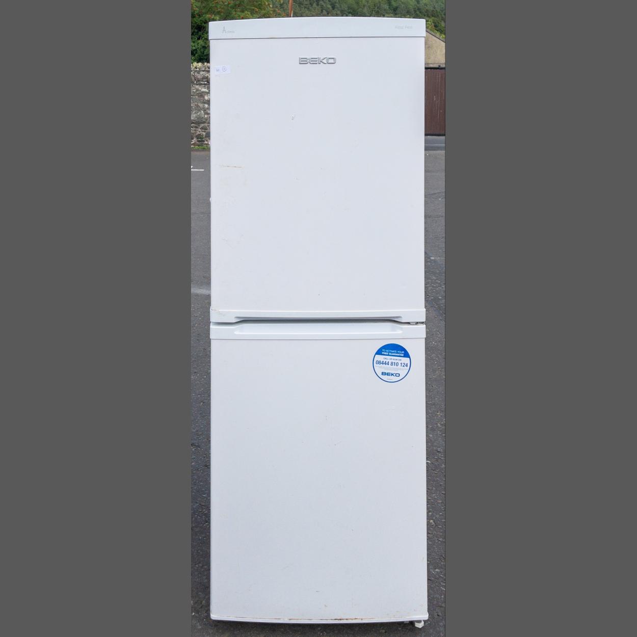 A BEKO A CLASS frost free fridge freezer - this item requires cleaning inside - dimensions 150cm height x 54cm wide x 55cm depth approx - runs perfectly!