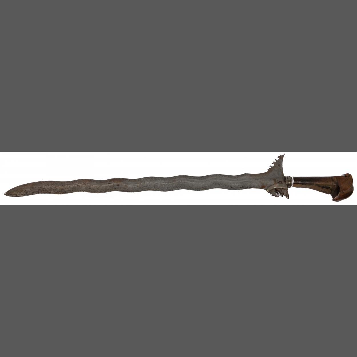 Large possibly Philippines Moro KRIS / Keris without sheath. 56cm blade, 69cm total length approx. Some damage to handle.