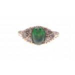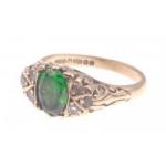 A nice substantial green emerald and 6 small diamonds(tested), ring size M gross weight 4.38g approx