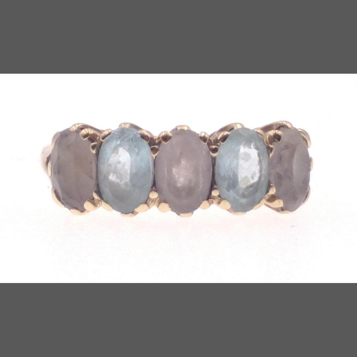 A clear and blue set 'yellow metal' (Hallmark rubbed) weight gross 2.47g approx ring size R