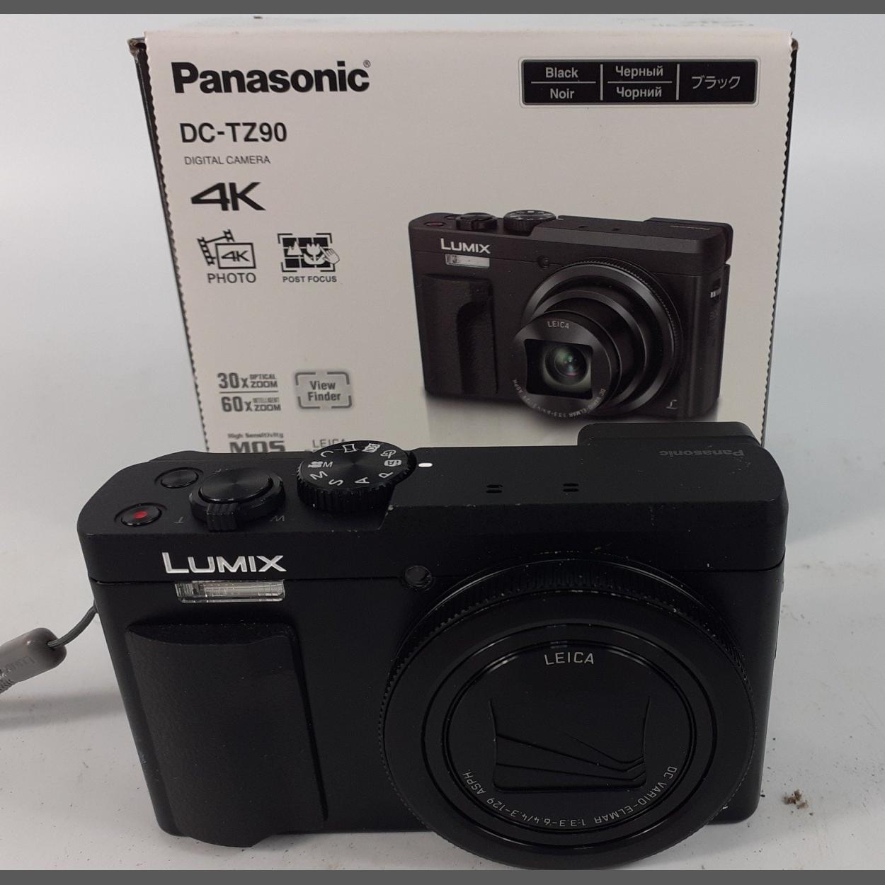 A PANASONIC DC-TZ90 digital camera in original box , the camera has a battery and SD card though no charger and is in an UNTESTED condition