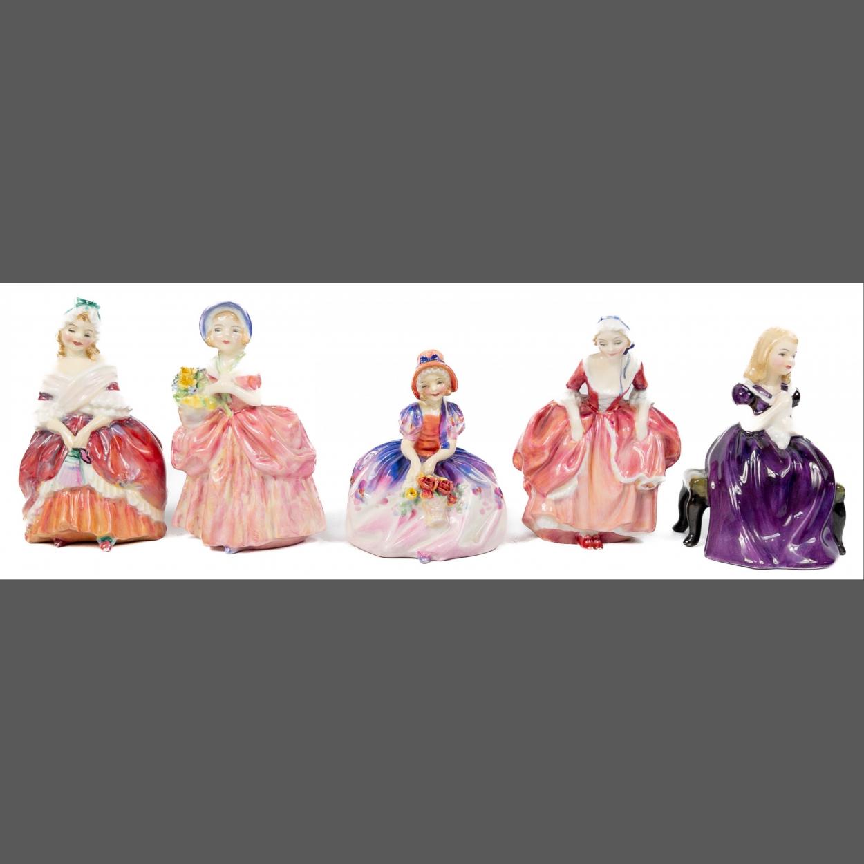 A collection of smaller ROYAL DOULTON 'Ladies' to include Monica (HN1467), Cissie (HN1809), Peggy (HN1941), Goody Two Shoes (HN2037), and Affection (HN2236) each approx 14cm high