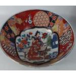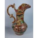 Two modern eye catching ORIENTAL Ceramic items a large 34cm gilt handled jug decorated with boating scenes and a 26cm diameter VIBRANT bowl , the bowl has crack to the rim