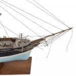 A wooden static ships model of the three mast, iron hull clipper CORIOLANUS. Super detail to the rigging but needs sympathetic cleaning and some rigging reattached. 70cm long including bow sprit (approx). Stands 46cm high approx.