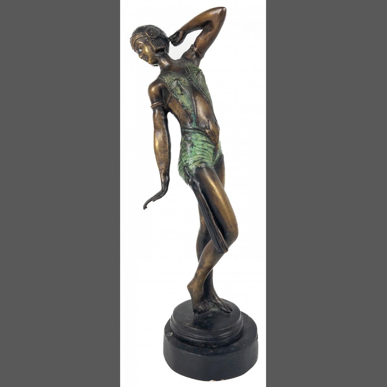 Art Deco inspired bronzed statue of an attractive lady with sword sheath (Salome?) Attractive figure with replacement base. 35cm high approx.